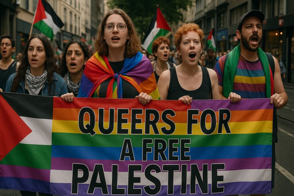 Els pro-palestins irrompen a l’escenari i obliguen a aturar la festa. Durant una hora van segrestar l’acte.
